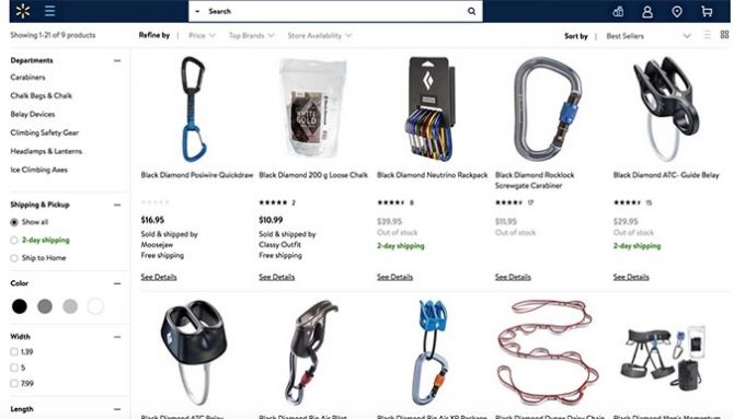 Black Diamond was not happy its imagery showed up on Walmart’s site. Photo: Screenshot