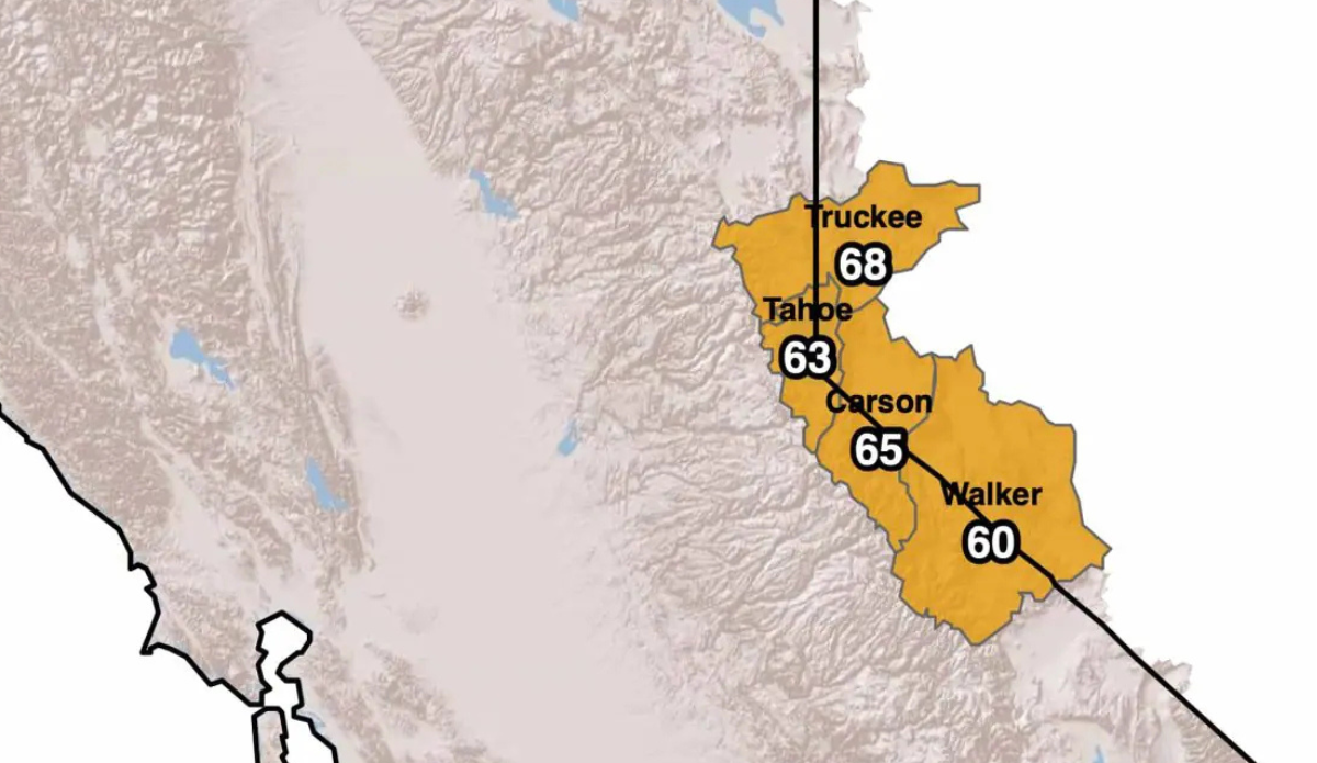 Regionally, the Northern Sierra Nevada isn’t far off the mark. Having fallen to 89 percent of its average for this time of year, things are looking much better than the Central Sierra (58 percent) and the Southern Sierra Nevada (47 percent). That equates to a snow water equivalent of 17.4 inches in the Northern Sierra, 11.8 inches in the Central Sierra, and just 6.8 inches in the Southern Sierra.