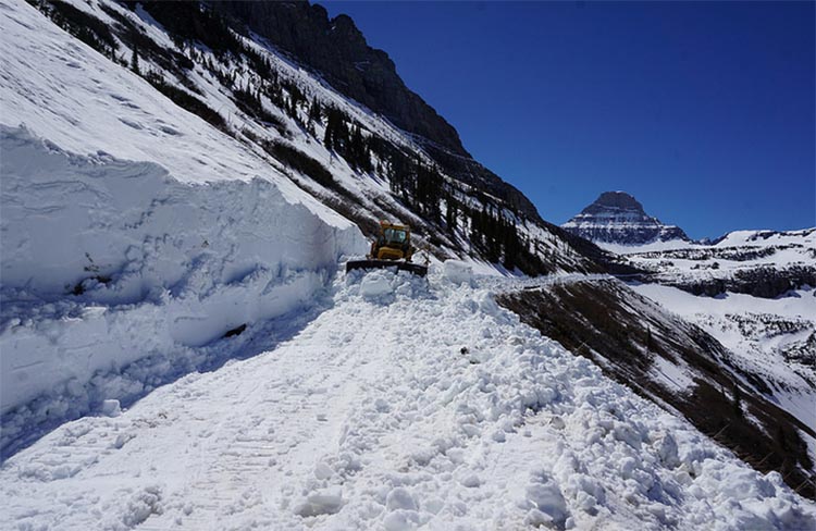 Plowing roads has been uber gnarly this spring in general thanks to massive snowpacks across the West. Clearing Tioga Pass in California was a beast. But how about Logan Pass in Glacier National Park, Montana, the highest point on the Going-to-the-Sun Road smack dab in the middle of one of our greatest national treasures? Plowing this baby should come with some serious hazard pay.