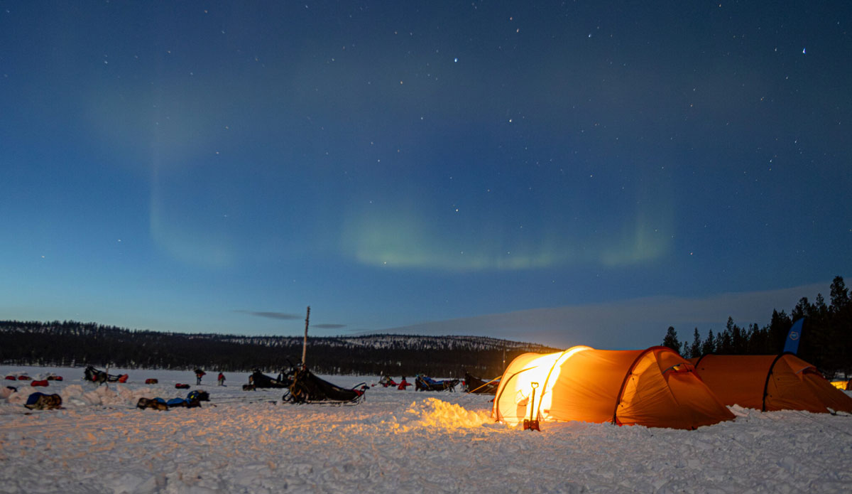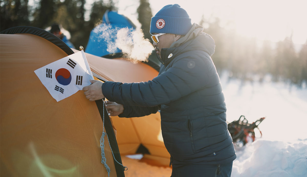 A Fjällräven Polar 2023 team member dials in his camp. Photo: Fjällräven