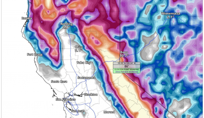 According to several sources, by Monday, Sierra snow totals this week could now overshadow what we were told heading into last weekend. UC Berkeley’s Central Sierra Snow Lab threw out a lofty expectation of “six-to-nine feet” on Monday morning, even if we’re still far enough out for that to change.