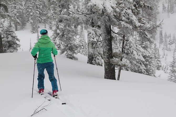 Actually, I’m not sure if this is the perfect women’s touring setup because, well, I’m not a woman. But to find out, I employed the mother of my children—we’ll call her Jenelle—to help me. And she knows cause she’s been through every generation of painful, heavy backcountry ski equipment from bulbous binding applications like alpine trekkers (remember those monsters?) to early 2000’s Damirs (still beefy but getting there) to the newer, ultra-light versions from Dynafit. So she’s suffered and earned her right to an opinion.