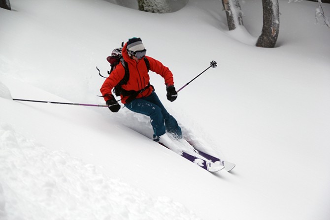 DPS Skis are kind of like a Fletcher Chinourd, Hamish Graham or Tim Stamps surfboard: they’re built with care and thought, and often designed while experimenting with materials to improve performance. And I think that’s why the Zelda 106 in Tour 1 Carbon with a balsa core works so well as a touring ski. It’s super light (a couple pounds each with bindings). That svelte weight is as close as you can get to cross country skis, an incredible advantage in the backcountry when you’re shredding a ski designed to go down, but climbing with one that feels like it belongs on a flat, groomed skate track. The wide shovel and flex pattern are perfectly engineered for a relaxed, stylish turn. And that carbon flexes with fantastic pop—literally lifting the rider into said turn. Laying down massive carves in open pow is obviously incredibly easy as well.