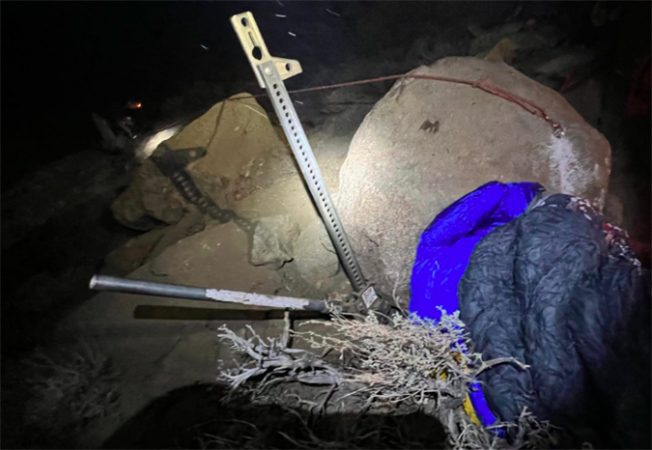 In its statement Inyo County Search and Rescue noted, “Challenges encountered on this mission included coordination of multiple agencies and resources; accessing an accident scene in steep, loose rocky terrain; using limited resources to move a large boulder; managing a severely injured patient for several hours while awaiting the helicopter extrication; assisting in a nighttime helicopter hoist; all in chilly December darkness.”