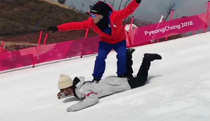 How Do Bored Snowboarders Pass Time at the Olympics? They Surf Each Other