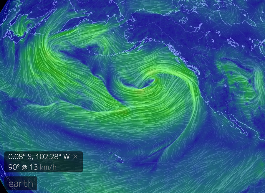 The surf forecast is right in line with those predictions, where already sizeable surf will double to the 30-35 foot range Friday in parts of California. After that the swell will stick around for well into the week, but the question will be the wind direction. If the models are correct, we can expect some serious onshore winds ushering in a storm cycle that will hammer western North America with precipitation.