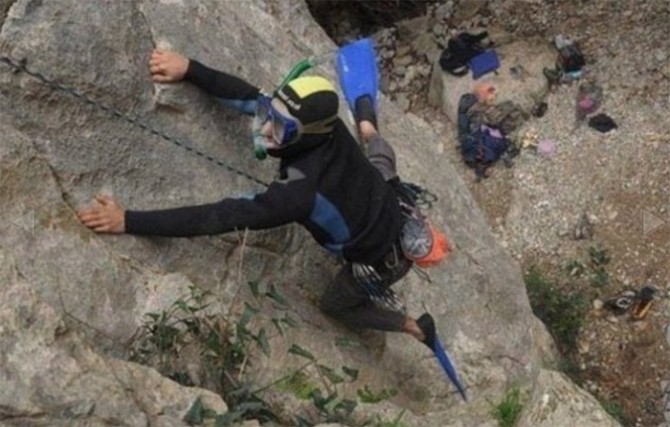 To his credit, Banks did summit the formation and made it to within 100 feet of the ground before accepting the helicopter rescue. He disputed the meth charge in a television interview, claiming military veteran status and stating that he uses prescription drugs for PTSD (no word on why those would make him act all cray, cray). He also says he’s an experienced climber — and he now has a first ascent to his name. Still, the wetsuit?