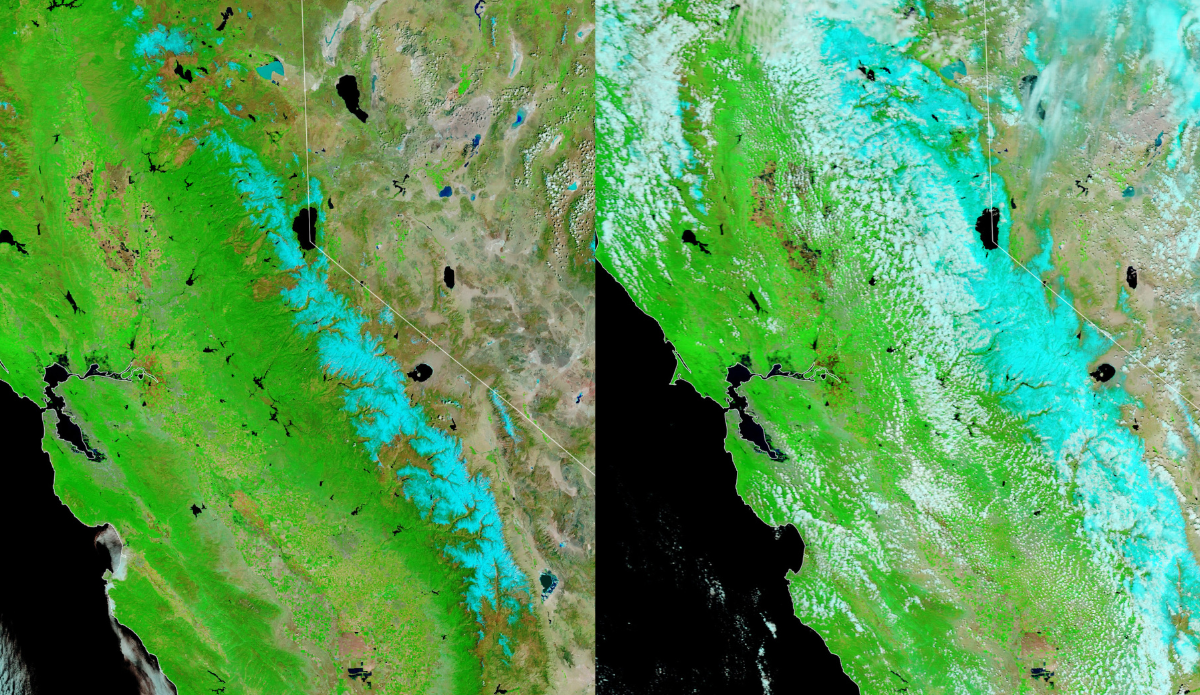 Meanwhile. NASA put the storm’s temporary impact into perspective by sharing satellite images of the West Coast on May 3 and on May 5. Snow coverage is noticeably greater throughout the Sierra range in the May 5 image as well as throughout much of Nevada.