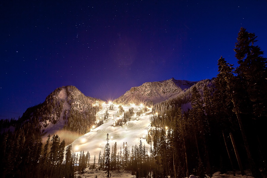 Explore the 541 acres of night skiing at The Summit at Snoqualmie. Photo: Ikon Pass