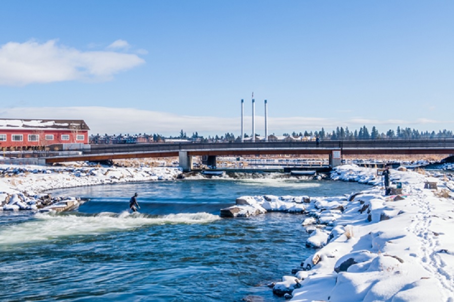Zip into a wetsuit, grab that other board, and drop into the Bend Whitewater Park. Smack dab in the middle of town, the Whitewater Park is built with four different wave features so that surfers, paddle boarders, and whitewater kayakers can take it from snow to surf in the same day.