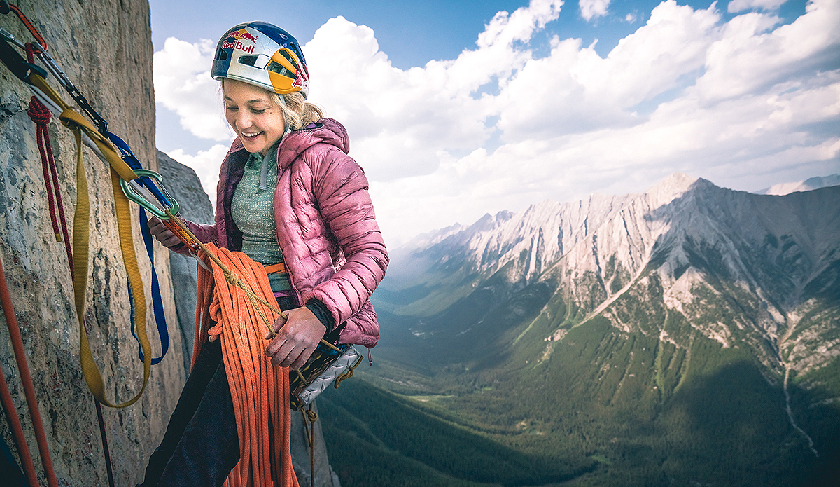 Earlier this summer, climber Sasha DiGiulian packed her car and drove 20 hours from Boulder, Colorado to Banff, Alberta. She was setting out to make history by being the first woman to ascend the Canadian Trilogy: Castle Mountain, Mount Louis, and Mount Yamnuska.