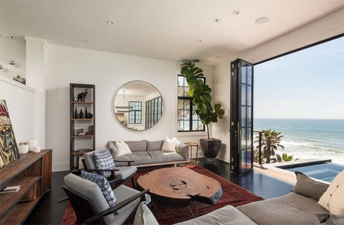 Tiered decking adorns the outside of the house which includes a vanishing edge spa and a private stairway down to the beach. According to records, the house was purchased five years ago for $3.85 million. You can see the full layout, here.