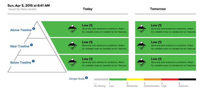 The tour really begins long before boots and skins are on — the team must thoughtfully select terrain to ski, weighing a number of different factors. Each member of the tour ought to have an understanding of the snow history of the area, to be aware of any weak layers in the snowpack or particularly dangerous aspects or elevations. Most regions in which backcountry skiing is popular have free avalanche forecasts published online every day. In Colorado, the Colorado Avalanche Information Center makes this (and much more) information available on their website.