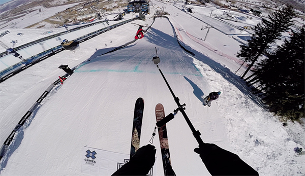 Enter human drones Justin Mayers and Caleb Farro, GoPro employees and skiers assigned to the gnarly task of capturing mid-air footage of athletes in motion. Both Mayers and Farro line up at the top of a run, be it Big Air or Slopestyle, and then follow the athletes while holding a camera, taking off on the massive kickers, often launching some 120-feet while trying to keep the camera perfectly still. It’s a tough gig. But getting the shot is worth it.