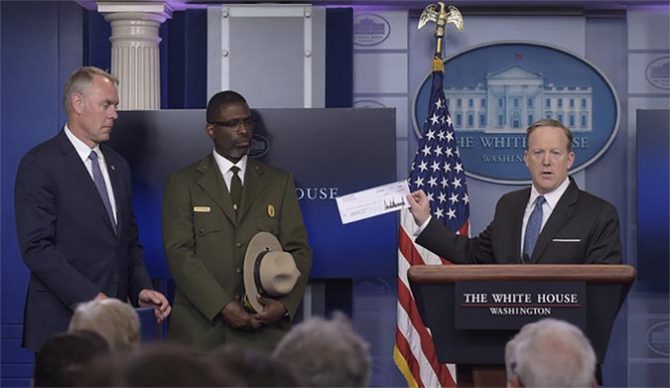 This of course comes after Trump’s proposed budget cuts, which slash 1.5 billion, or 12 percent, from the Department of the Interior’s budget, seriously hampering an already hamstrung agency. Zinke says the department is currently staring up hill, way up hill, fiscally. “We’re about $229 million behind in deferred maintenance on our battlefields alone,” he said.