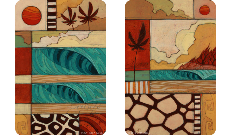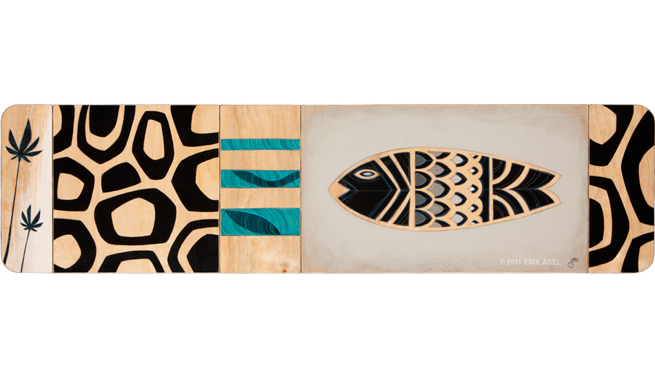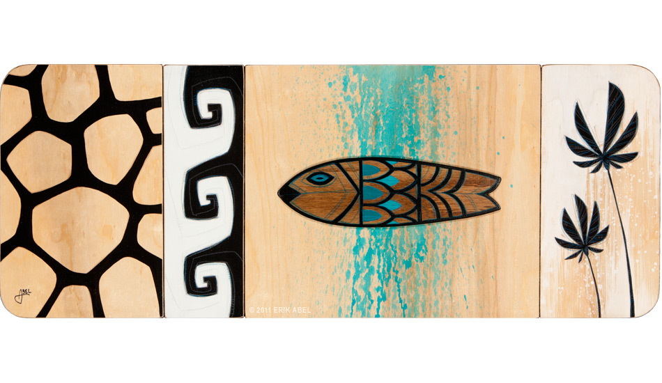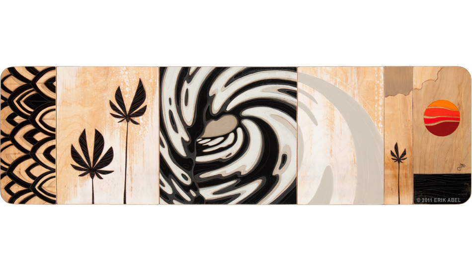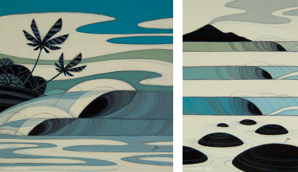 Recently returned from over 2 years of traveling and exploring New Zealand, the Tongan Islands, Australia and Indonesia and Fiji, Abel is back in Ventura, California living and working at the WAV artist community, and has been in a creative frenzy. Erik currently shows in galleries throughout the U.S. and plans to continue traveling the world, making art and searching for that perfect wave.