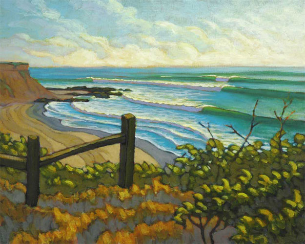 The first sight of the Pacific after hiking across the bluff confirms the surprisingly early arrival of a much anticipated swell. Back in town the word is all abuzz about this one. First real swell of the winter, big enough for the cove to break proper, the same old story as it’s always told and retold. Seems there’s no encryption on this network anymore, with every swell model downloaded to the public domain of collective consciousness. Now we all know when to skip work.