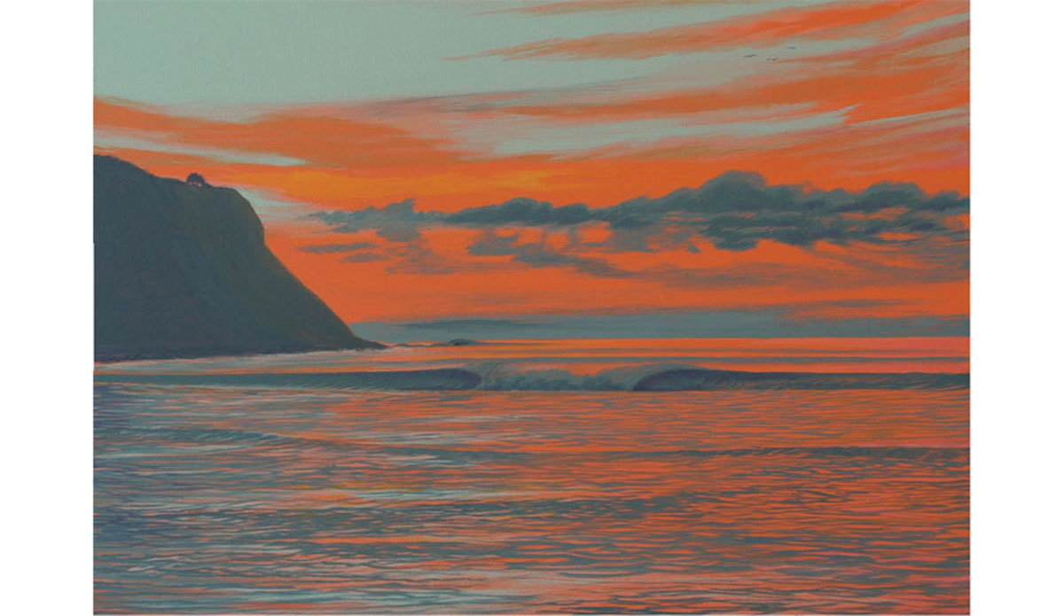 The show, called “The Comfortable Chair of my Youth”, features artists who have touched John’s life. Including the works of Cameron Calderon, Zen Del Rio, Damian Fulton, Jules Muck, Otis Shepard, and Derek West, it is, as you’d imagine, heavy on the surf art. One artist involved with ties to The Inertia is Damian Fulton, who illustrated a fictional story we published about the dystopian future of surf.