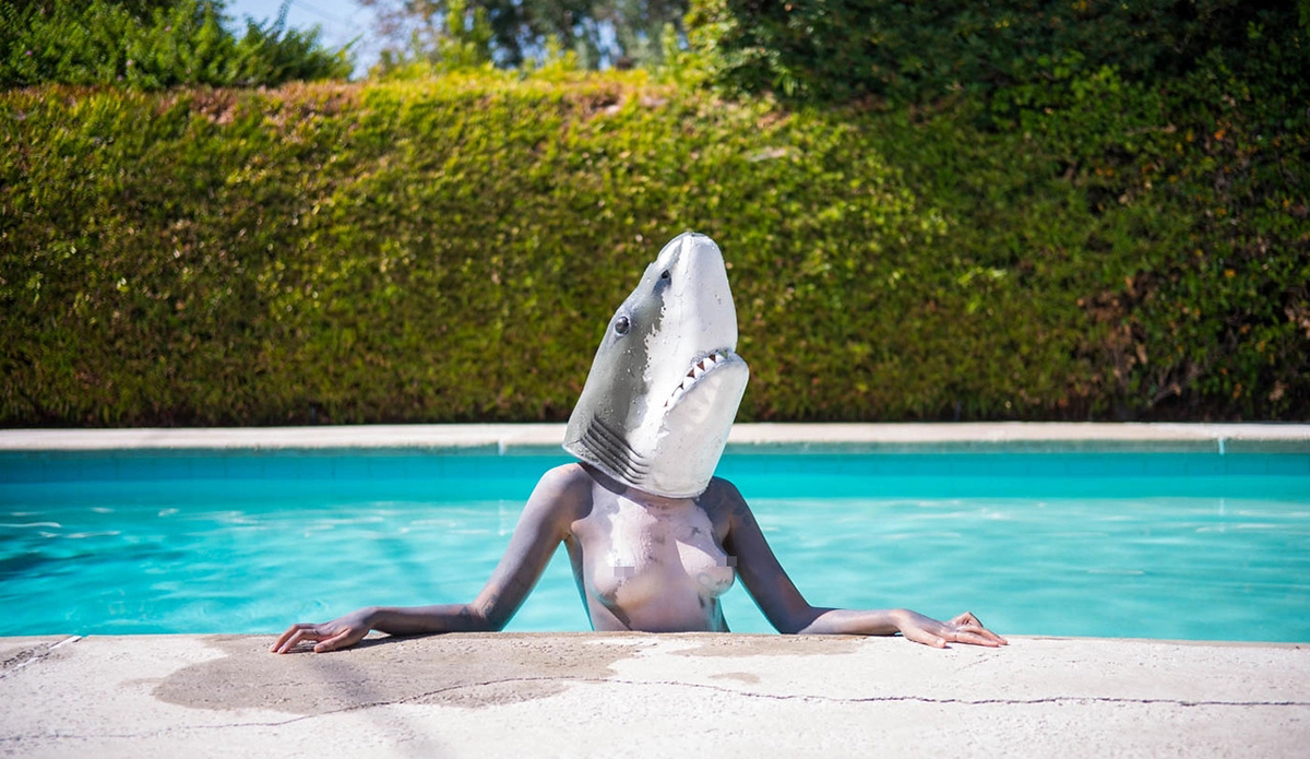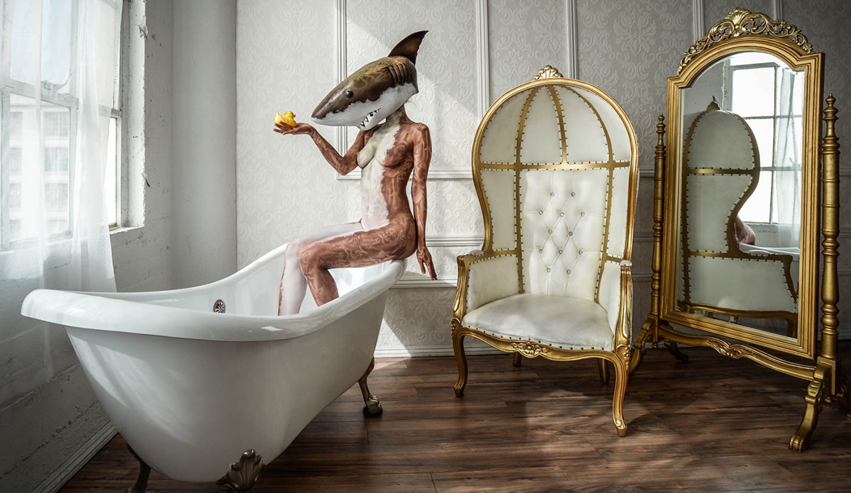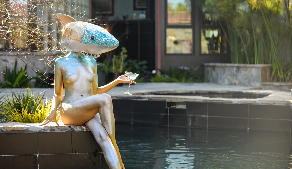 It was like any other day at the office when Roustan – also a surfer and surf photographer who has an affinity for the ocean – rounded up a few sea goddesses, and through a steady hand and cold mist from his trusty airbrush, morphed their curves into the ocean’s apex predator. Makes sense right?