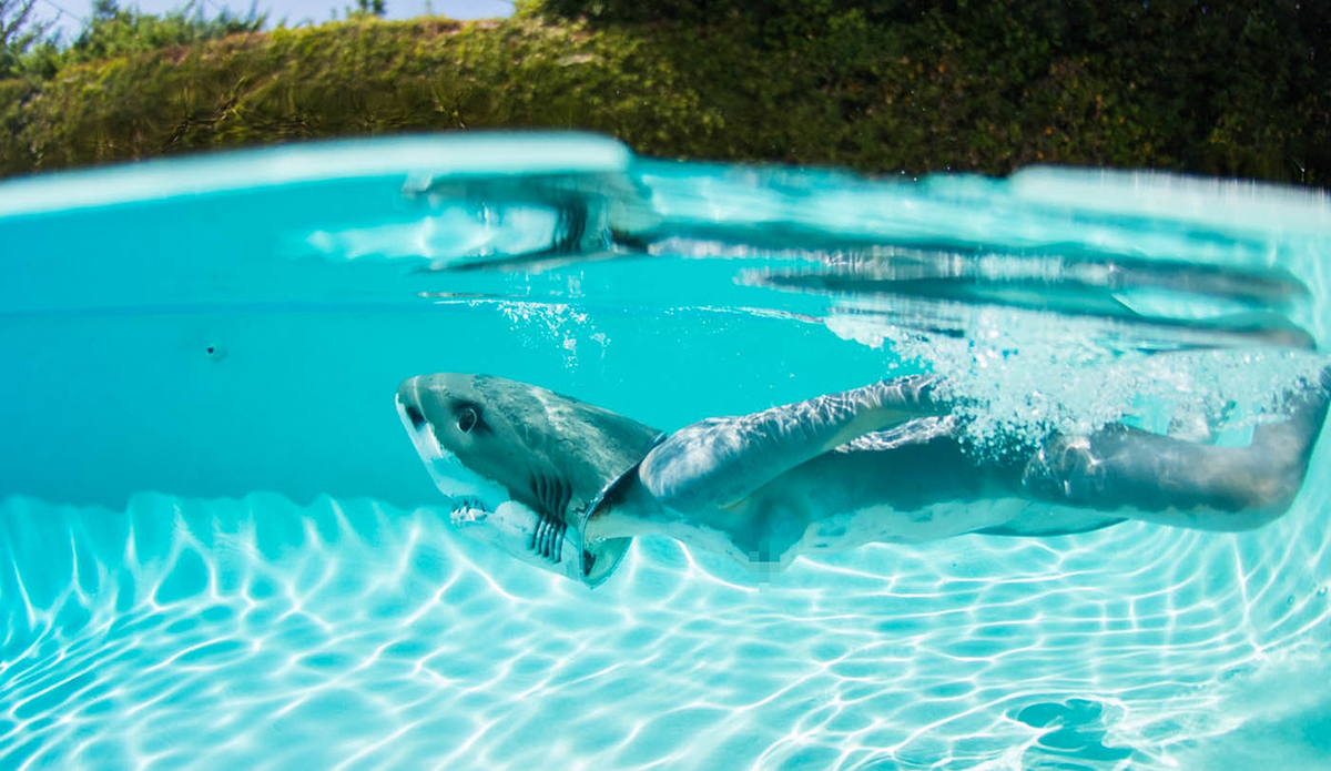 “It was a no-brainer to follow through on this concept,” Roustan says. “These gorgeous, powerful and intimidating creatures have to deal with a lot of daily struggles throughout their lives. When you think about it, the same is true for sharks too.”