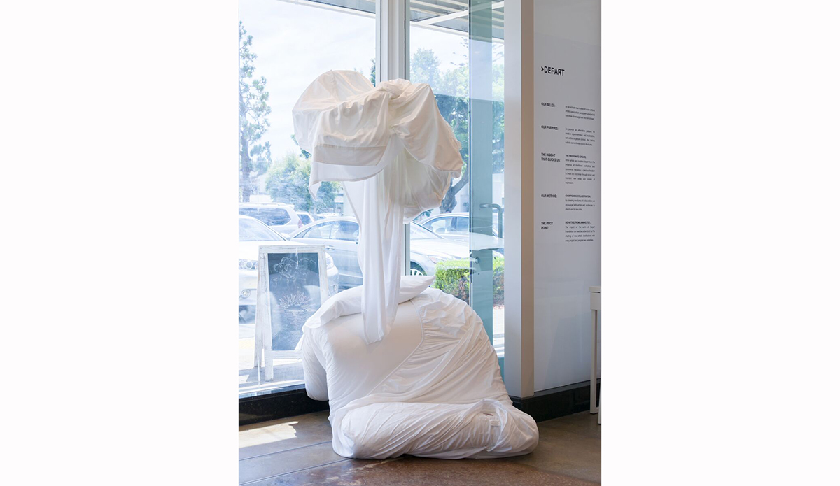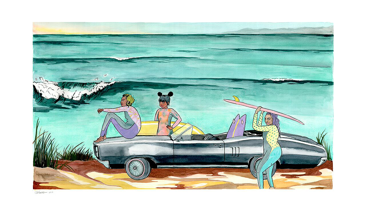 Surf culture is a goldmine for artistic inspiration. That creativity can be expressed through any number of mediums, from film to photography, sculptures, graffiti, or even a tan piece of leather lying with a beach chair and a beer can. At the Depart Foundation in Malibu, all of these ideas and more are featured in a vibrant exhibit called Sea Sick in Paradise. The show’s curator, Amy Yao, was very intentional in highlighting a myriad of different perspectives in the exhibit. “I’ve seen a lot of shows that were the same voices over and over,” she says. Focusing on Southern California, the show is a celebration of the vibrant and multifaceted community of people who live their lives by the sea.