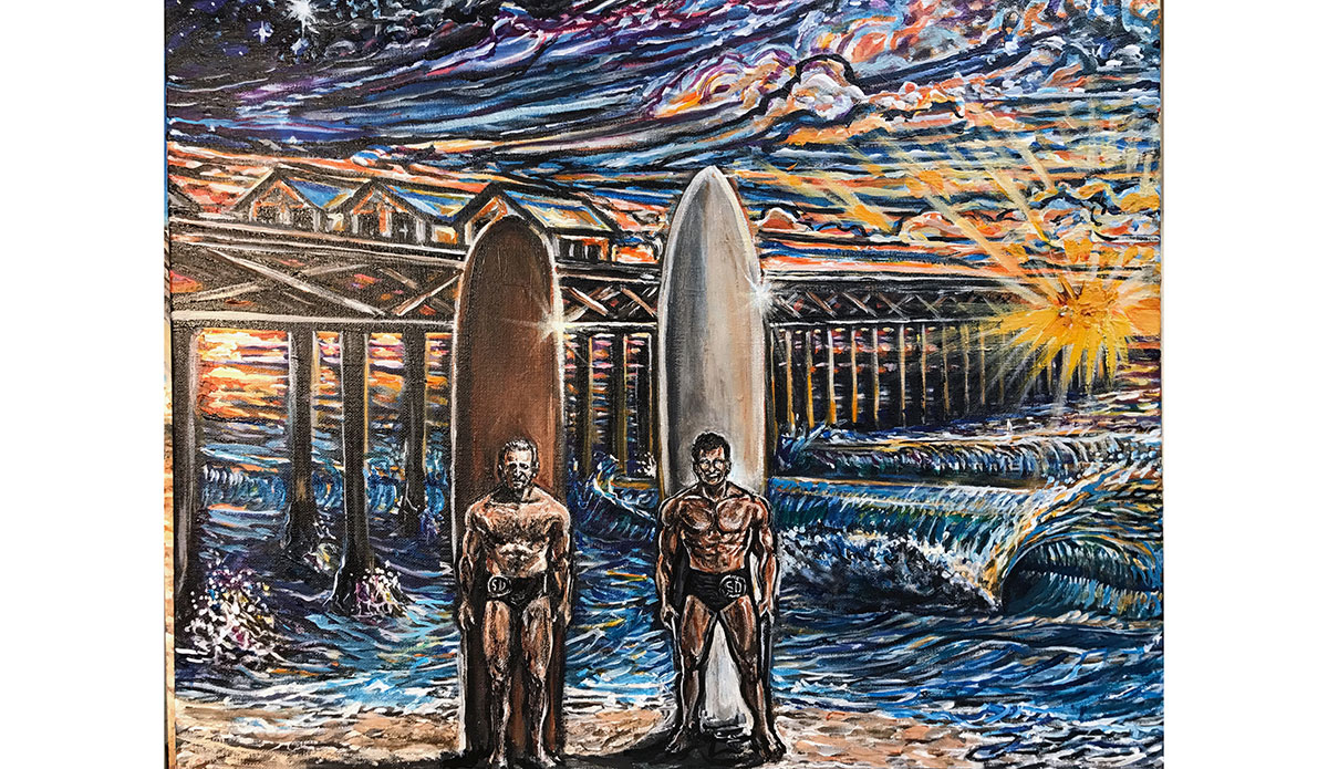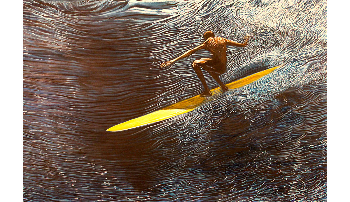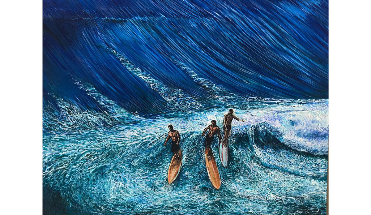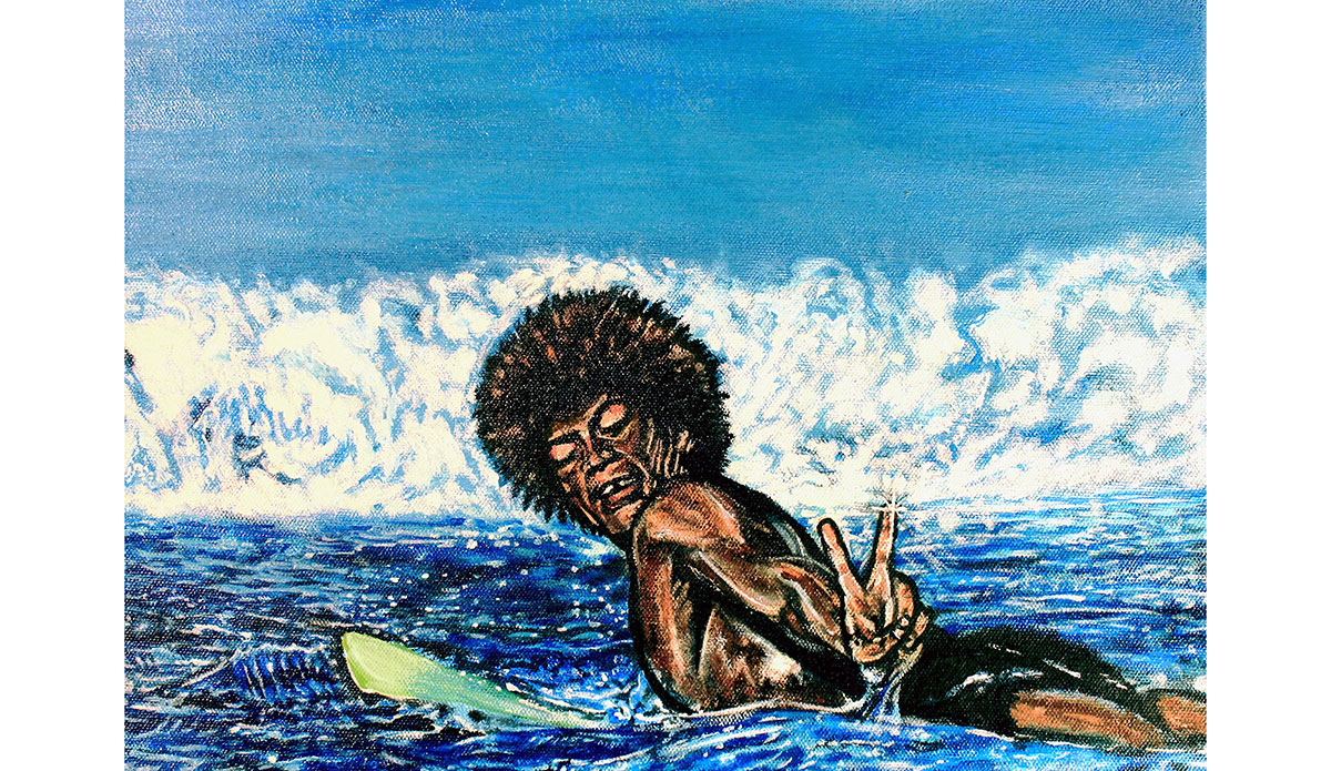 Now, I’m all about expressing my narratives through art. Acrylics on canvas and fiberglass. It’s a tribute to the surf history my family was a part of; those great characters and the culture that shaped the course of my life.