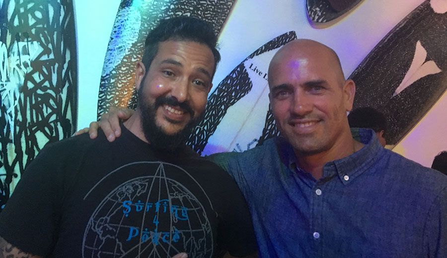 Joshua and Kelly Slater at an event for Surfing 4 Peace, a person-to-person and cross-border cooperation initiative that aims to bridge cultural and political barriers between surfers in diverse communities in the Middle East and around the world.