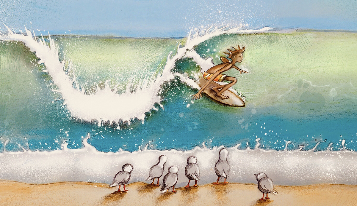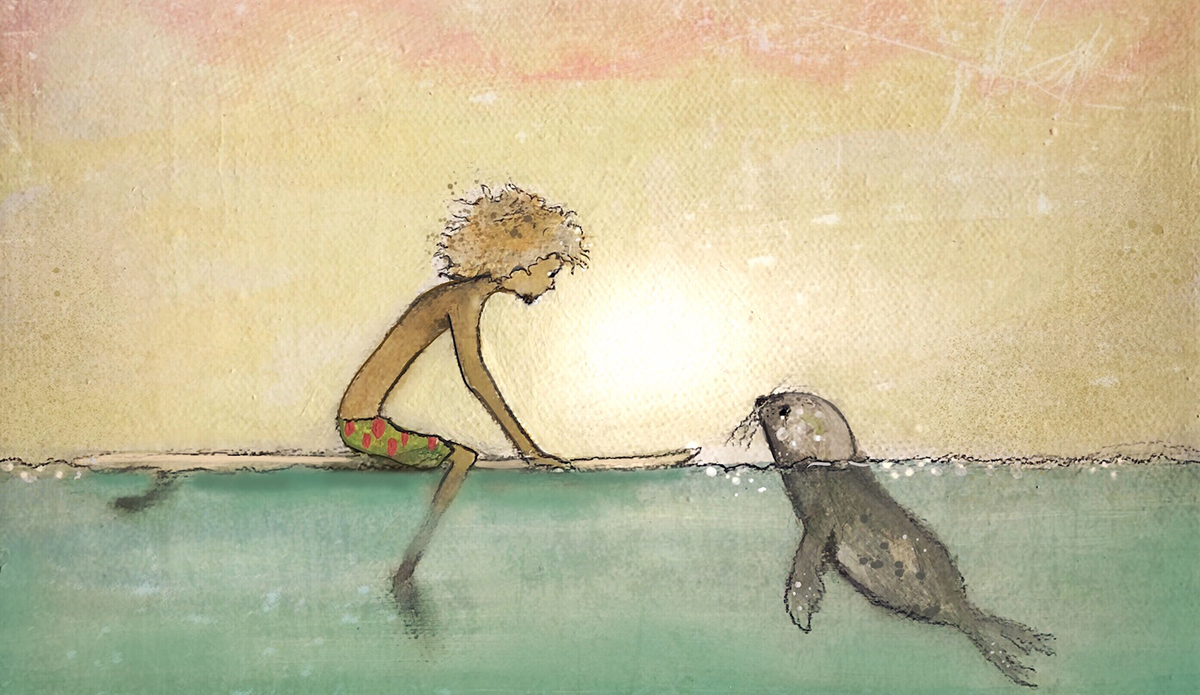 I love the moments of human encounters with other species – the shared respect and mutual awe. Many of my paintings explore these moments. There is a careful mix of humor and gravity in my art, with a hope that it reminds people of our delicate interconnectedness with the ocean and our need to protect it.