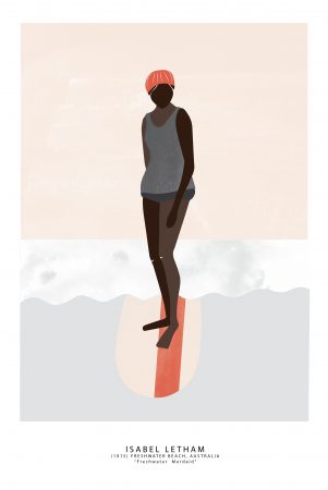 Isabel Letham was an Australian surfboard pioneer and swimming instructor, renowned as “the first Australian to ride a surfboard.” Isabel is well known for riding a board with Duke Kahanamoku himself on the 10th of January, 1915 at Freshwater Beach, Sydney.