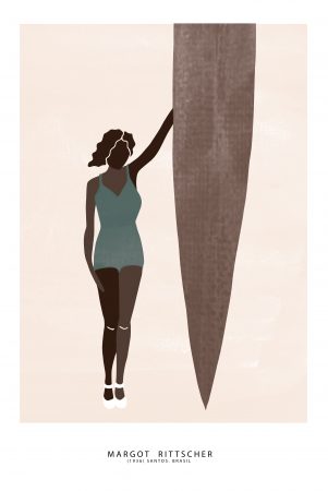 The daughter of an American family living in Santos, Margot was the first woman to surf in Brazil. Passionate about the sea, Margot was surfing at Gonzaga’s beach in the 1930s and kept surfing into the 1960s.