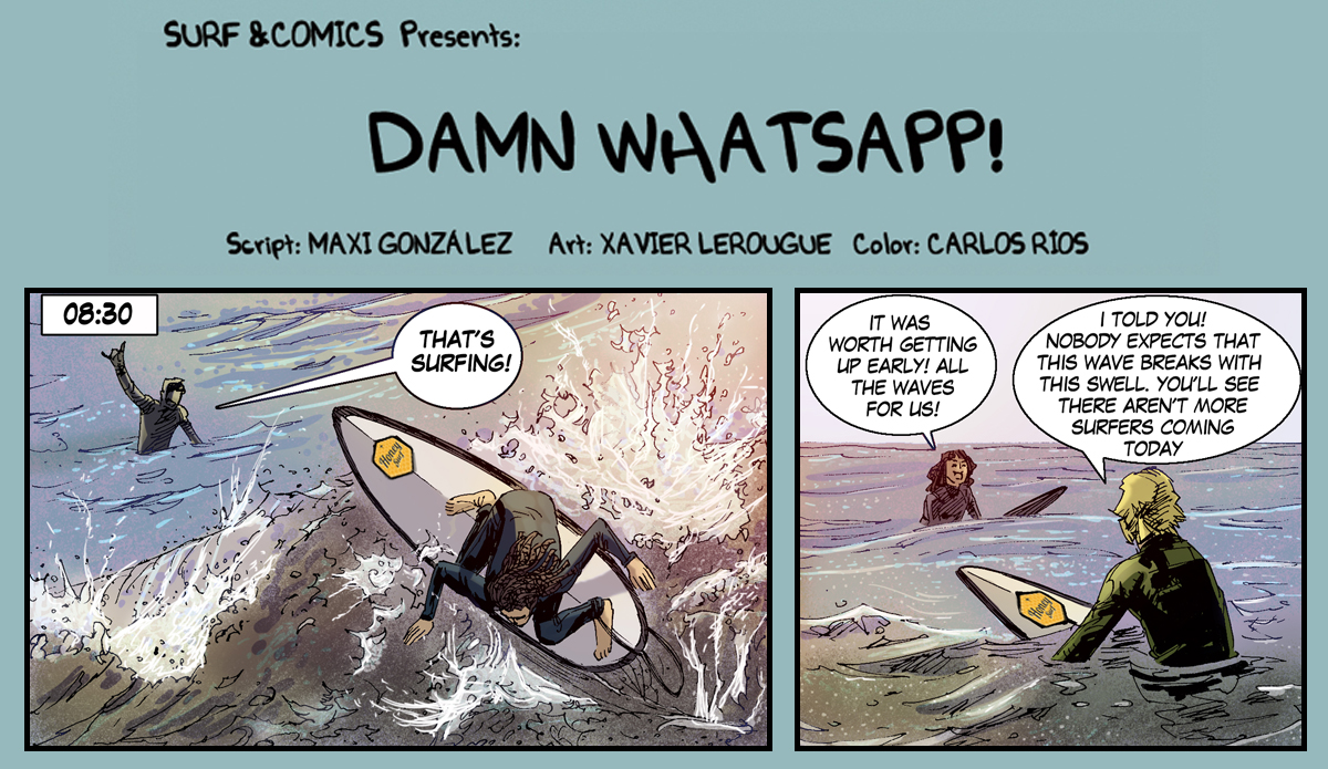 My name is Maxi González. I’m a surfer and a comic script writer. I suppose it was only a matter of time before I would merge my two passions, and share my unconditional love for surfing and the ocean doing what I do best: writing comics. And I was fortunate enough to persuade some incredibly talented artists to participate in this madness.