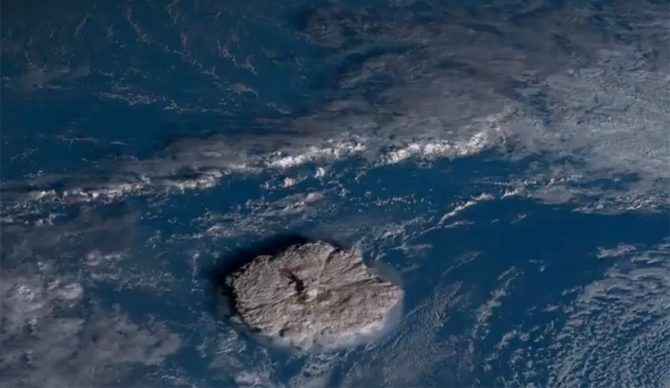 The Hunga Tonga-Hunga Ha’apai volcano eruption could be seen from space. Image: Twitter/Screenshot