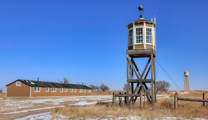 The reconstructed barracks, guard and water towers at the newly designated Amache National Historic Site, or the Granada Relocation Center. Photo: Stuart West//NPS