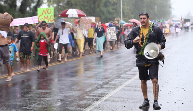 Mayoral candidate Dustin Barca leading an anti-GMO march. Photo: Courtesy of Change for Balance Productions