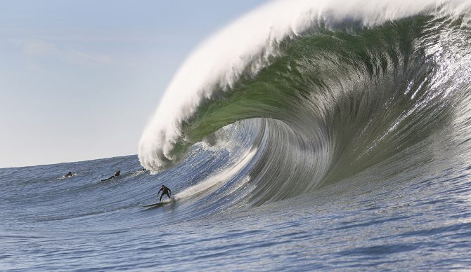 To capture that, the Coastal Arts League Gallery in Half Moon Bay will be displaying Mavericks: Heavy Metal, a unique exhibition of Quirarte’s work from January 15th to February 11th. 30 of his images taken over the past 20 years have been reprinted onto specially coated aluminum using dyes. Samples of the aluminum recreations weren’t shared by Quirarte or MetalPrintsTM in a press release announcing the exhibit, but it’s not a stretch to say if any wave is worthy of a Heavy Metal themed art exhibit, it’d be Maverick’s.