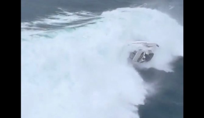The P/C Sandpiper capsizes near the mouth of the Columbia River, Astoria, Ore. Photo: screenshot