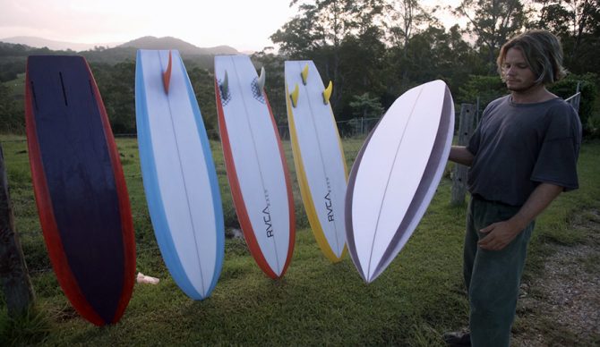 One example, in a literal ocean of them is Byron Bay surfer-shaper Ellis Ericson who has taken inspiration from George Greenough’s Edge surfboard designs into the bay. Grassroots, out-of-the-box, original-thinking, Greenough came up with his Edge theory in the early sixties and has been tweaking it ever since. With the guiding eye of his Yoda, Ericson has given the concept a new field of vision – creatively shaping his way into the unknown while tapping the past for influence.