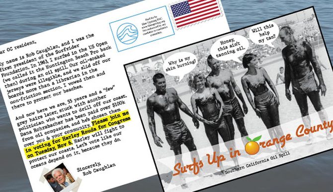 Who the hell wants the coves in Laguna Beach covered in oil? Nobody (except Dana, apparently). That’s when Rob and the Blue Uprising team got to work and created this postcard to send to voters in OC. We know that real stories matter, and that the best way to talk about the issues affecting our communities is to actually say things that people will listen to. We’re hopeful that the surfing community will chip in and help spread the message of this postcard so we can protect California’s waves, water, and coastline from future oil spills. This is our time to make a stand and follow in the footsteps of surfing legends. This is our time to vote.
