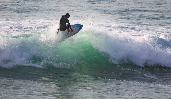 Of course, the test that would prove whether or not investing in a travel board would be worth it was in the actual surfing. Could a two-piece, stringerless board perform like any other quality surfboard? I also didn’t want something so difficult to put together I’d need an instruction manual. It actually ended up being really easy to put together. If you can screw FCS or Futures fins into a fin box, then you can piece together one of these. The carbon fiber rods slide in and out of the board while four separate bolts screw into the deck and bottom of the board at an angle, exactly as you’d screw in your fins. Voila. I put the whole thing together when I dropped my bags at the house and went for my first surf at fun, chest high Backyards. I never took it apart again until it was time to pack up for my return flight home at the end of the week. Two weeks later, while visiting Mom and Dad for Christmas, I brought the board with me once more and enjoyed the exact same luxuries in the “slightly” cooler waters of Northern California.