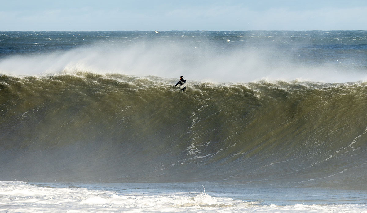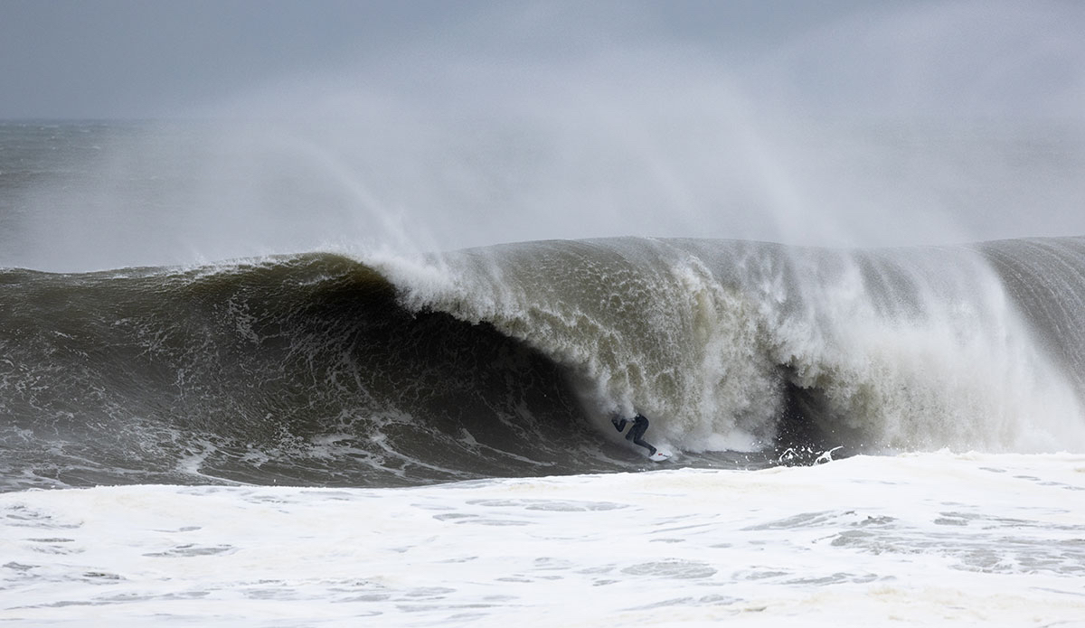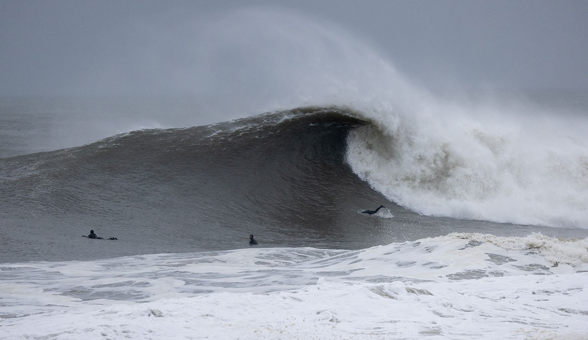 On December 18th, New Jersey surfers awoke to a rare day. Waves way bigger than normal were rolling in — about as big as anyone’s seen it in a long time — and for those who braved the conditions, a few diamonds were hidden in the rough. The surf report was almost unheard of, with a 20-foot swell at 15 seconds, and photographer Pat Nolan was on the beach, camera in hand, to document a day that might be remembered for a long, long time.