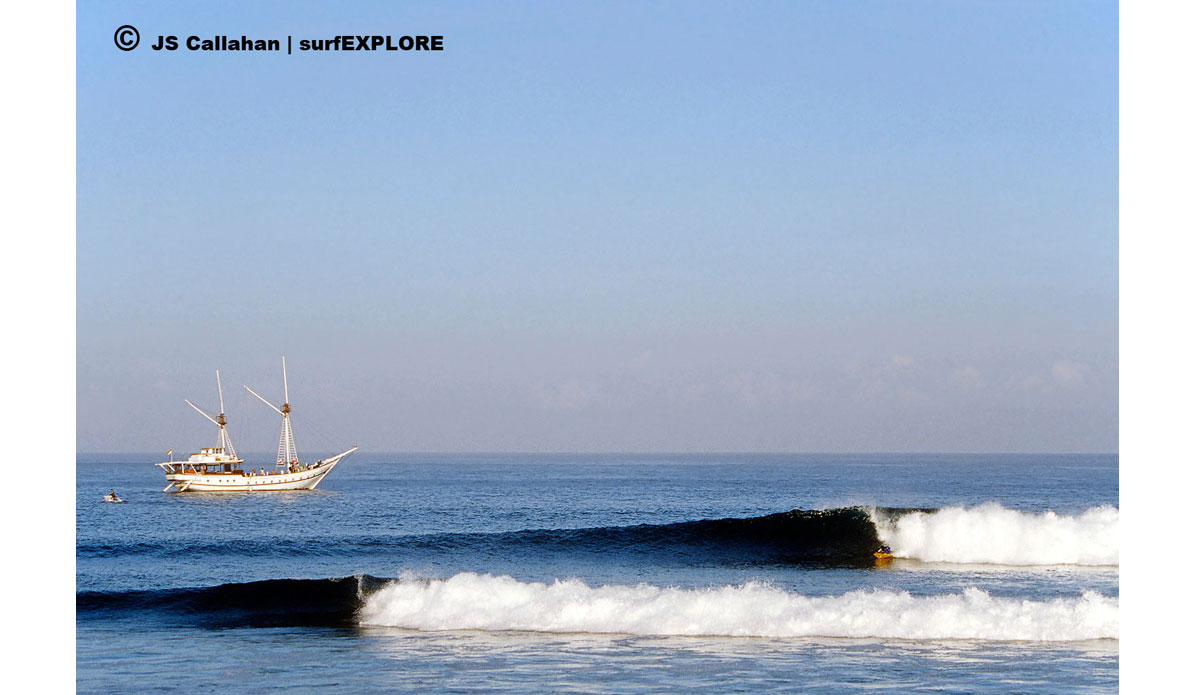 West Nusa Tenggara: This righthander on a popular holiday island in Lombok only works on the biggest of Indian Ocean swells and an incoming tide. At low tide it will be stone flat. As the tide surges through the Lombok Strait, the waves increase in size and in two hours it can be six feet and perfect. Photo: John Seaton Callahan/surfEXPLORE