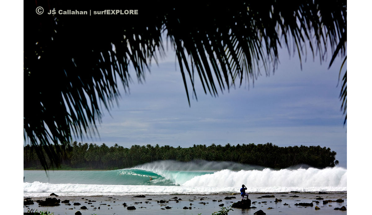North Sumatra: The classic Indonesian left at Asu, where long lines of Indian Ocean groundswell wrap around a coral reef with mechanical perfection. Asu is located on the equator, so shade is mandatory in the middle of the day as the tropical heat can be intense. Photo: John Seaton Callahan/surfEXPLORE