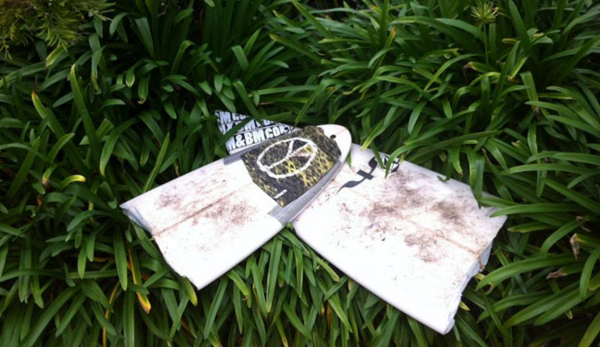 You one bad shreddah, yeah? He bust his stick he shred so bad. While none of the tips below will save your board from a big, fat lip landing on it, they’ll undoubtedly make it last longer. Photo: 1000 Surfboard Graveyard