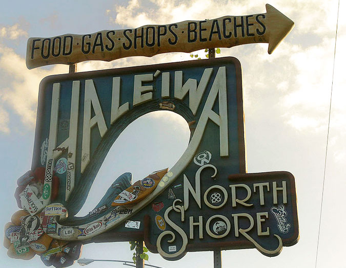 The iconic Hale’iwa sign on Oahu’s North Shore. Welcome to paradise. Photo: Wikimedia Commons
