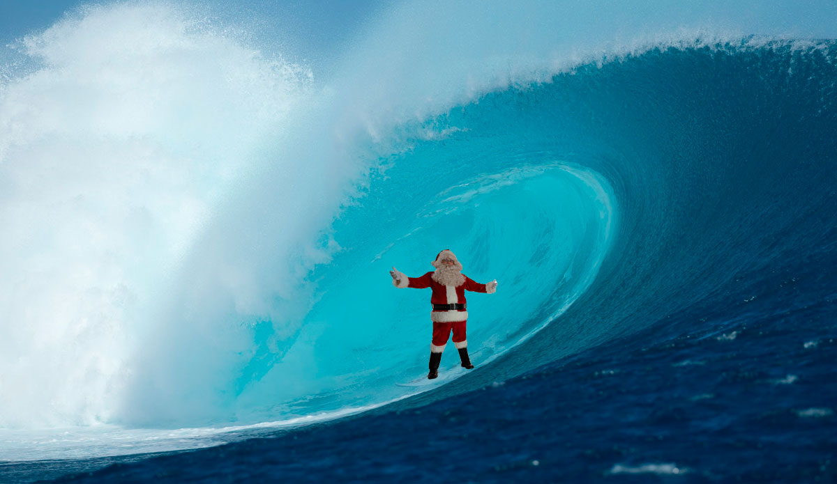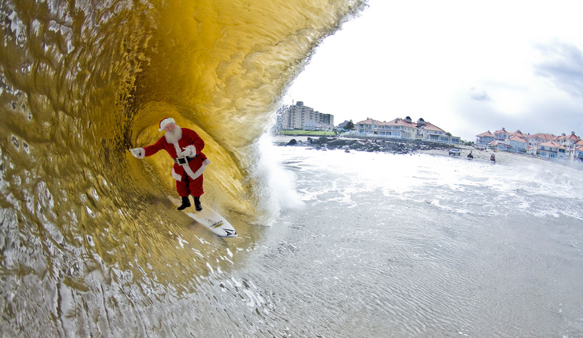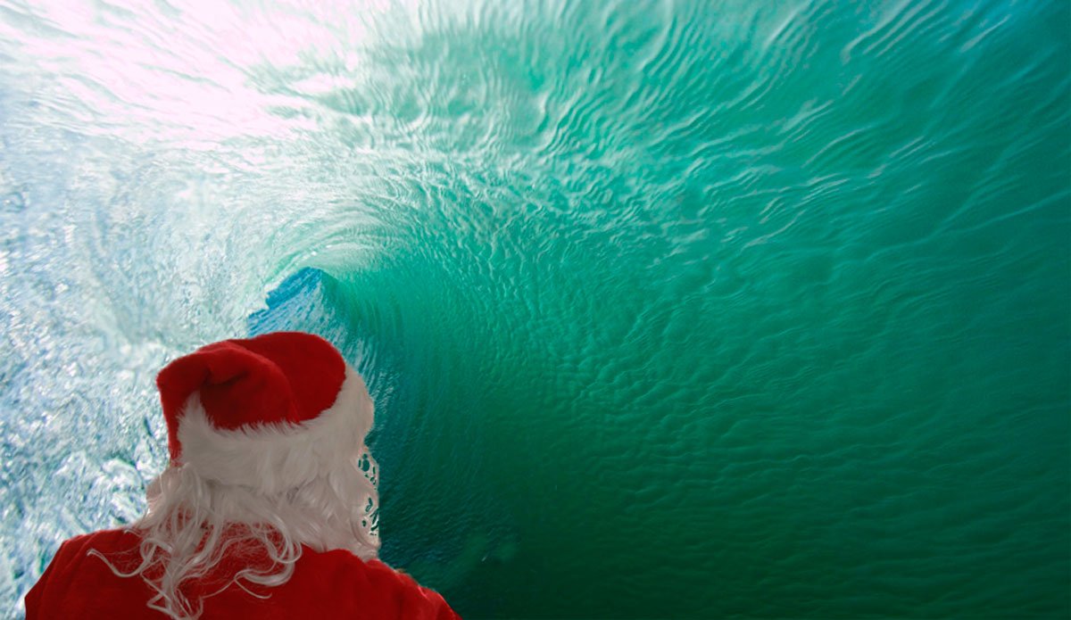 Santa Claus loves the barrel as much as anyone. In fact, in the off season, the ol’ guy keeps in chimney slithering shape by squeezing into as many tubes as he can – and with a sleigh like his, he’s got no problem scoring the best waves anywhere on the planet at any given time.