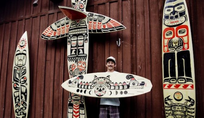 A few folks are doing some really interesting things with old unwanted boards. There are guys like Walter Blair Tom making boards into totem poles in the style of those across the Pacific Northwest. Or Jimmy Romo doing some pretty interesting stuff as seen here: