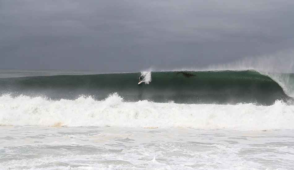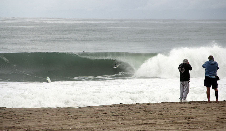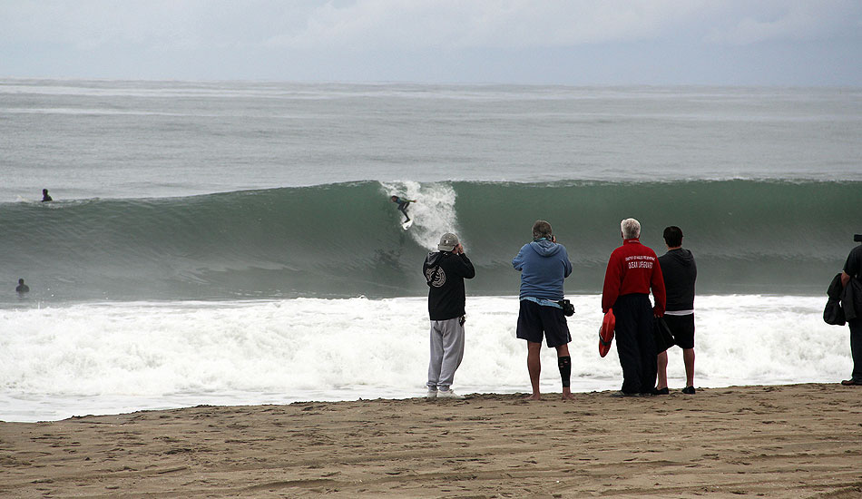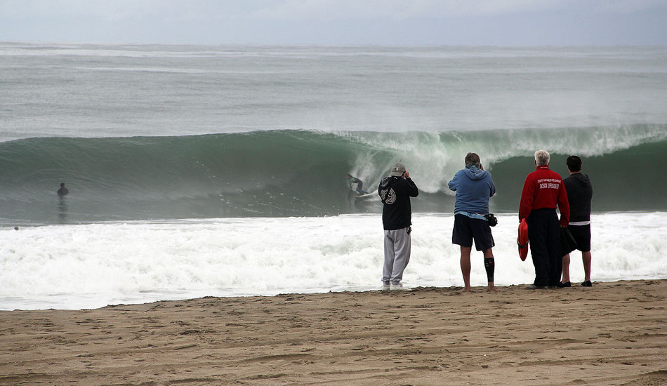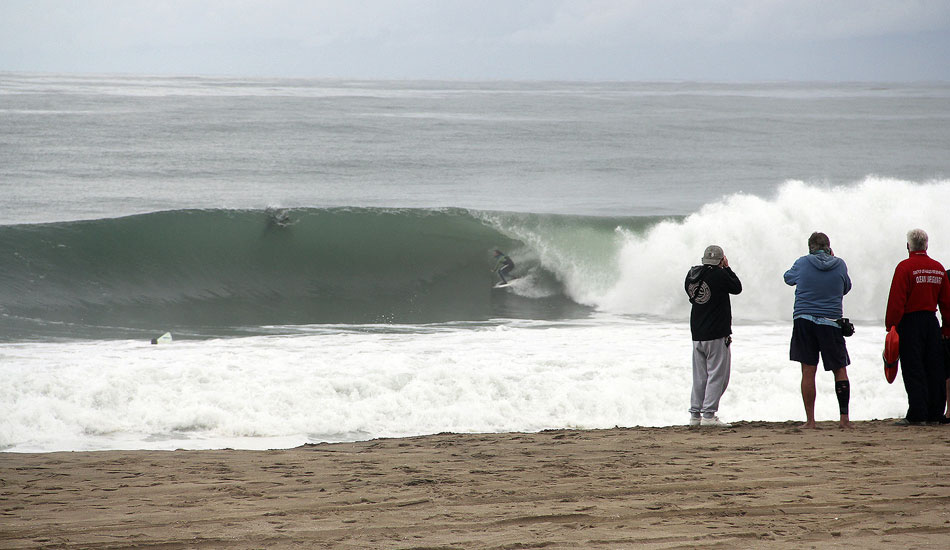 Alex Gray and Timmy Reyes were waiting for the bombs and not hesitating when they came. They were eerily comfortable taking beatings and pulling into black holes. There was a solid crop of locals charging as well like Connor Beatty, who got spit out of one of the cleaner barrels all morning. Easton Jones snagged a filthy one as well.