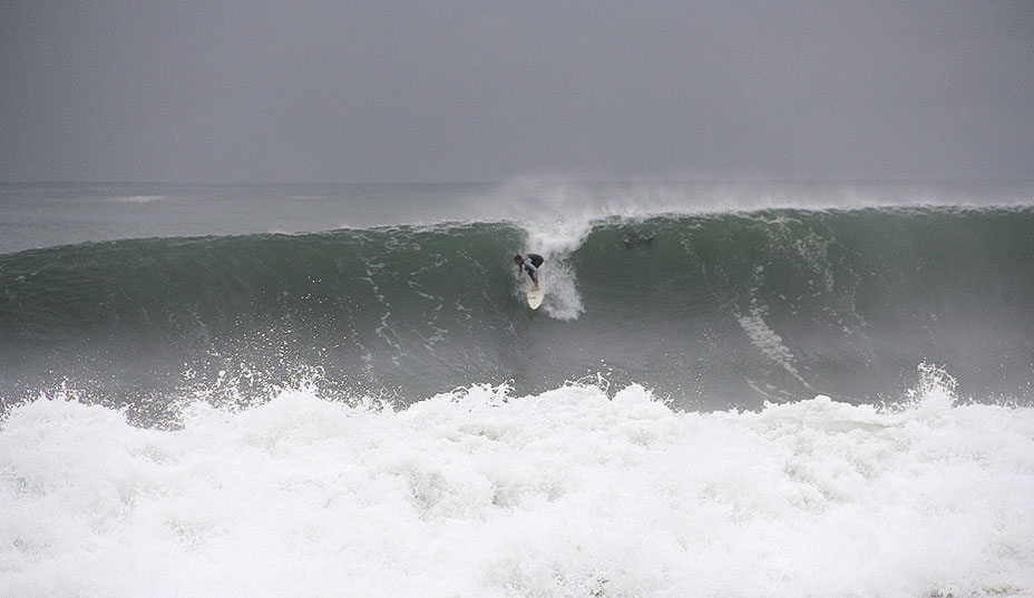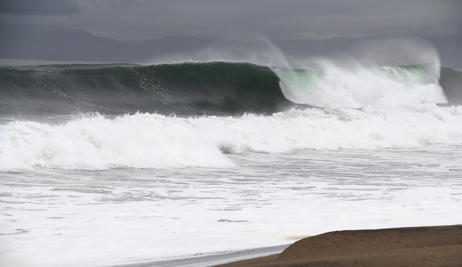 Carnage tally: A few boards washed in with broken leashes on most big sets, one board to the head concussion (taken away in ambulance), one knee injury (barely limped up the beach to car), handful of broken boards and at least one bruised ego from not catching one of the rare perfect ones.