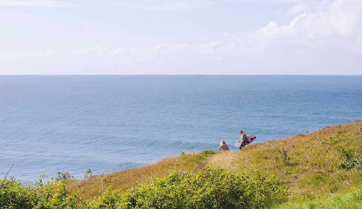 While we didn’t score waves of epic proportions, we didn’t really need to. We spent the three days purely searching for them, finding the odd glimmer of perfection. One of these glimmers was found in a bay just south of Byron without another person or building in sight. It featured a fun, hollow, running wave. We surfed there until dusk and then decided to paddle back instead walking in the cold air, chasing the sun as it set.