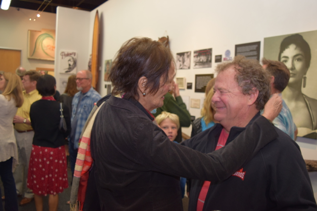 The Paskowitz family, led by youngest son Joshua, curated the exhibit with the help of Barry Haun at SHACC. In addition to photographs dating back to 1931, news clippings and video, there were surfboards, a pair of Doc’s old trunks, paintings by Joshua, and artifacts of a life well lived.